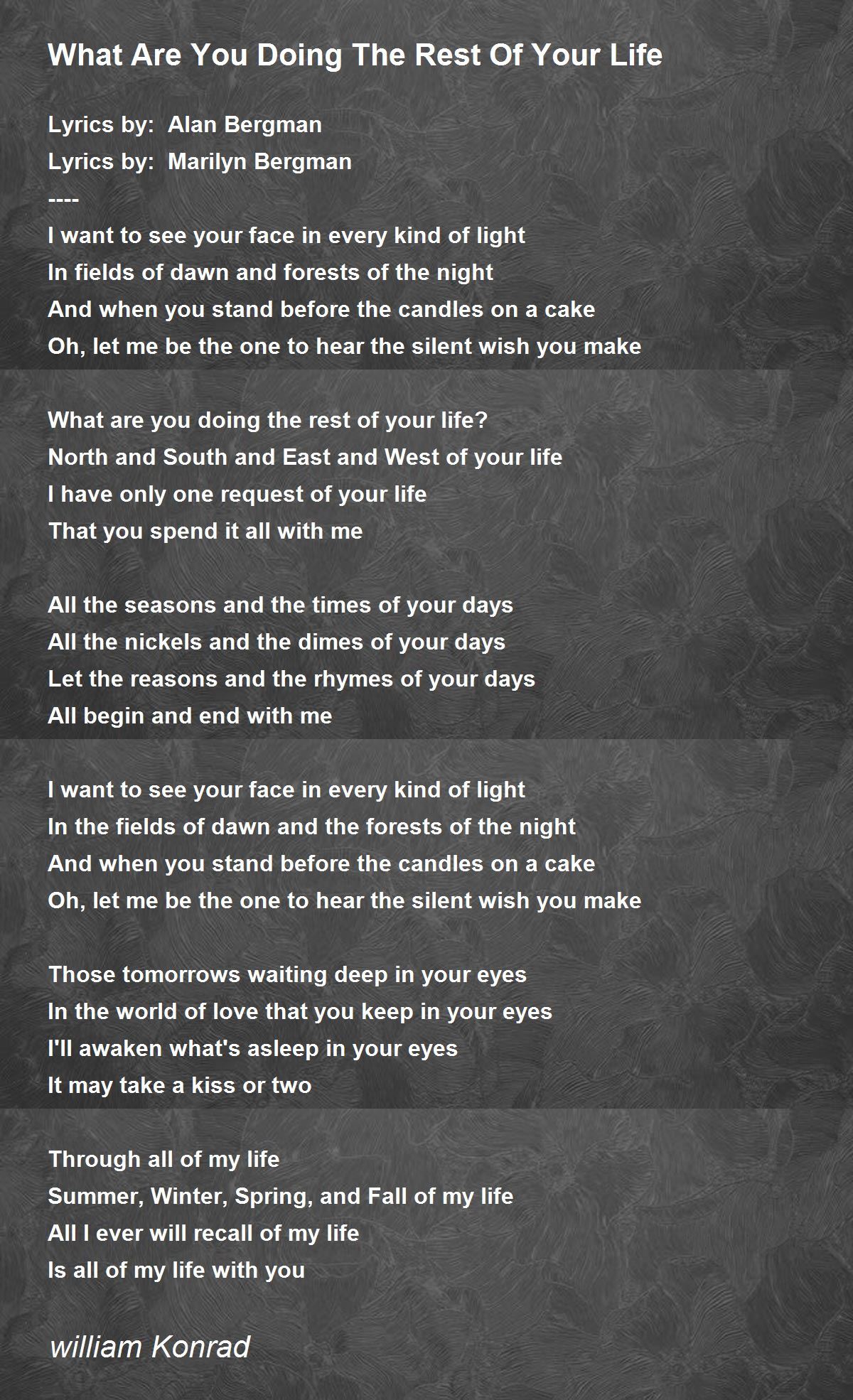 What Are You Doing The Rest Of Your Life Poem By William Konrad Poem Hunter